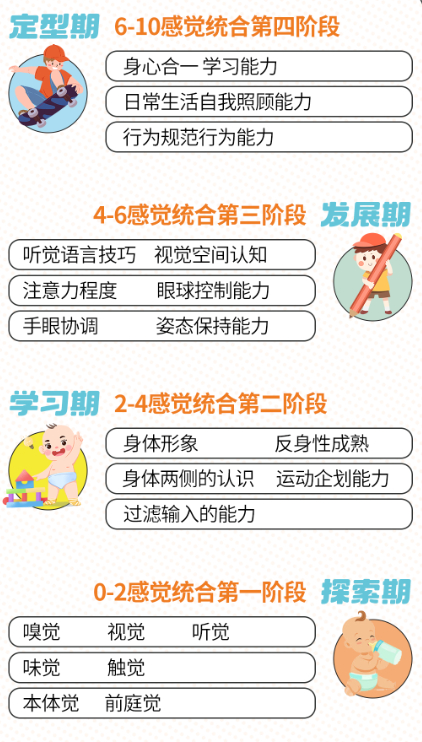 感統訓練貫穿孩子整個2-10歲,不同年齡孩子的能力發展不同,因此對應的訓練方式也不同。